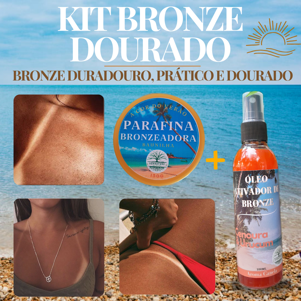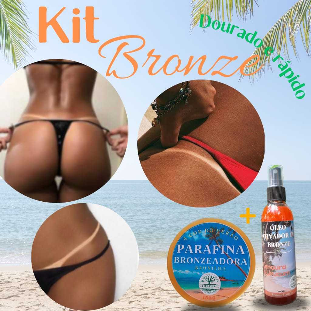 – Com o Kit óleo Ativador + Parafina Bronzeadora, você garante uma pele bronzeada, hidratada e perfumada.