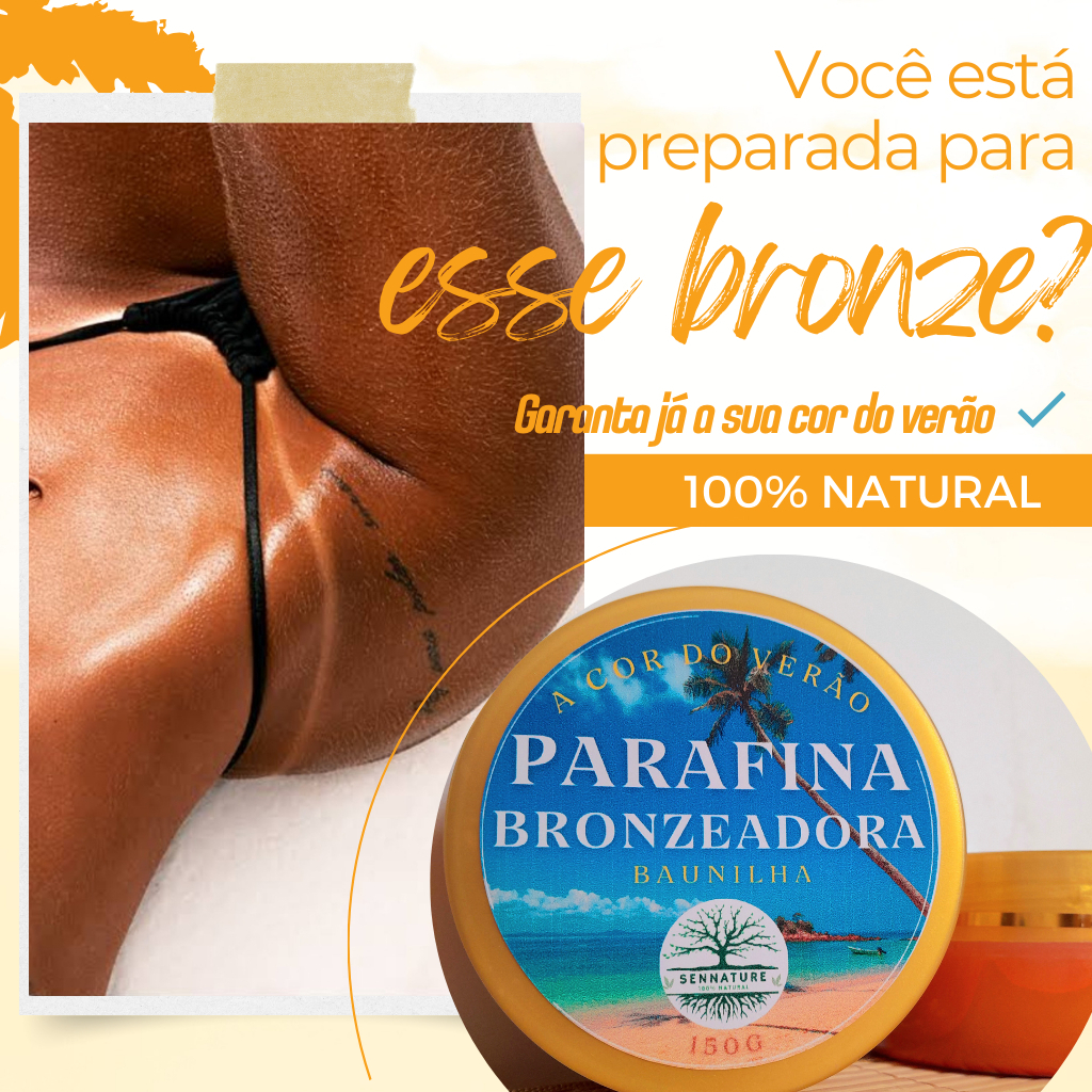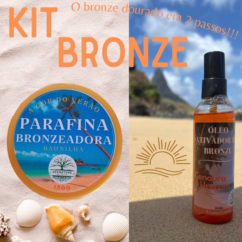 Garanta seu Bronze desejado com nosso Kit óleo Ativador de Bronze de Cenoura e Urucum + Parafina Bronzeadora de Baunilha.