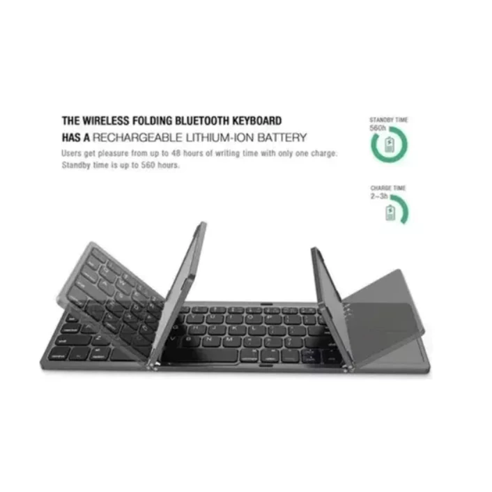 Bateria recarregável – Os usuários têm prazer de até 48 horas de tempo de escrita com apenas uma carga. O teclado bluetooth dobrável sem fio tem uma bateria de lítio-íon recarregável. O tempo de espera é de até 560 horas.